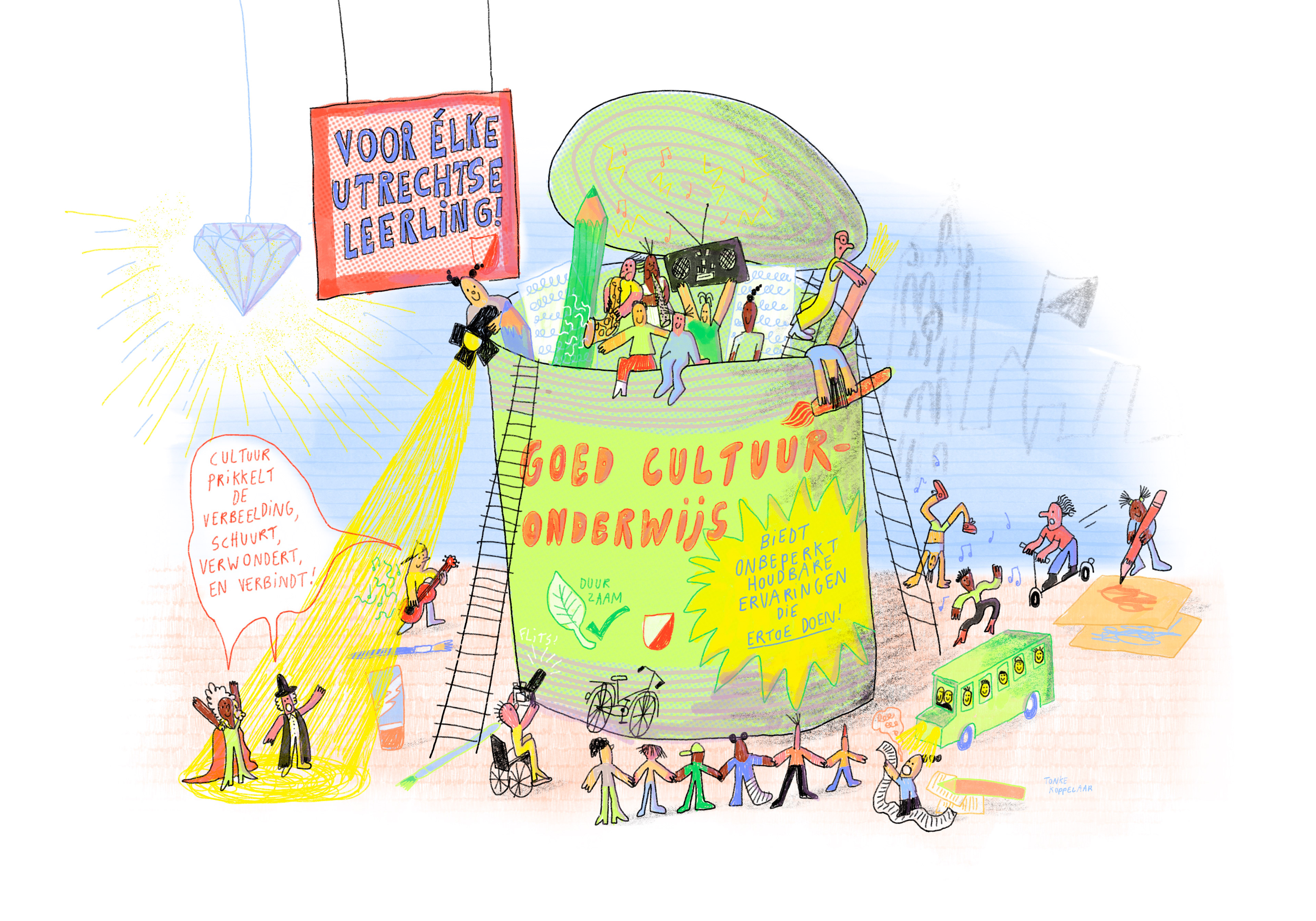 Een illustratie over goed cultuuronderwijs voor de Inspiratiedag van